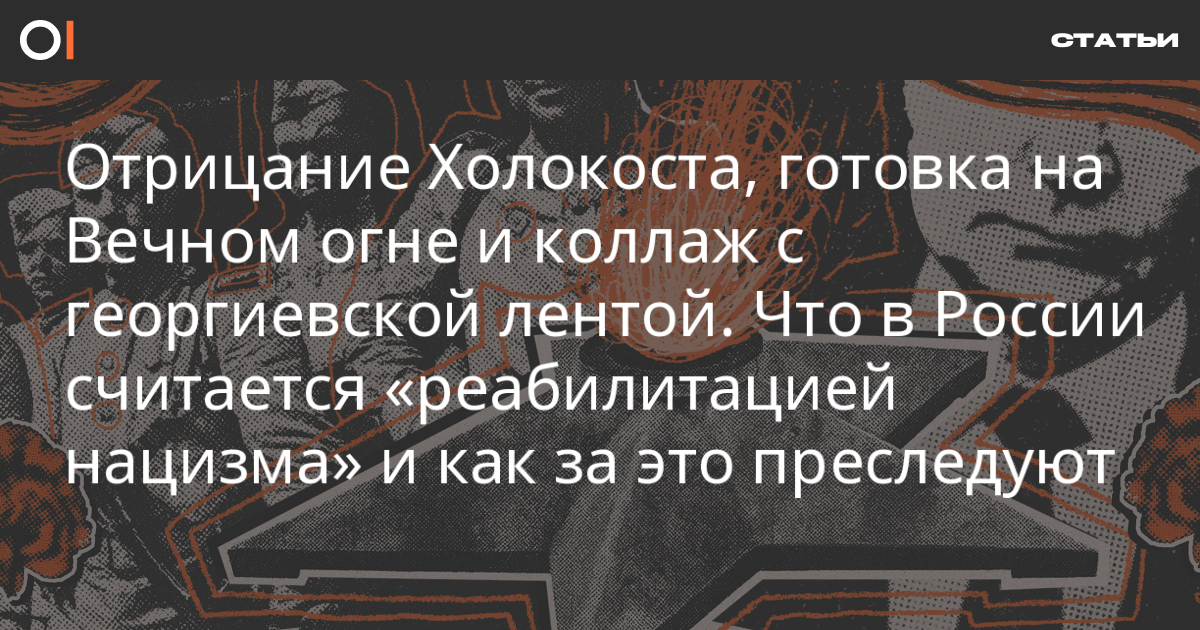 Уголовное дело о «реабилитации нацизма» могут возбудить не только за физическое «осквернение» символа, связанного с ВОВ. Попытки порассуждать о значении георгиевской ленты или традициях празднования 9 мая силовики квалифицируют как оскорбление памяти защитников Отечества. Совсем опасно проводить параллели между немецкими фашистами и действующим российским режимом.