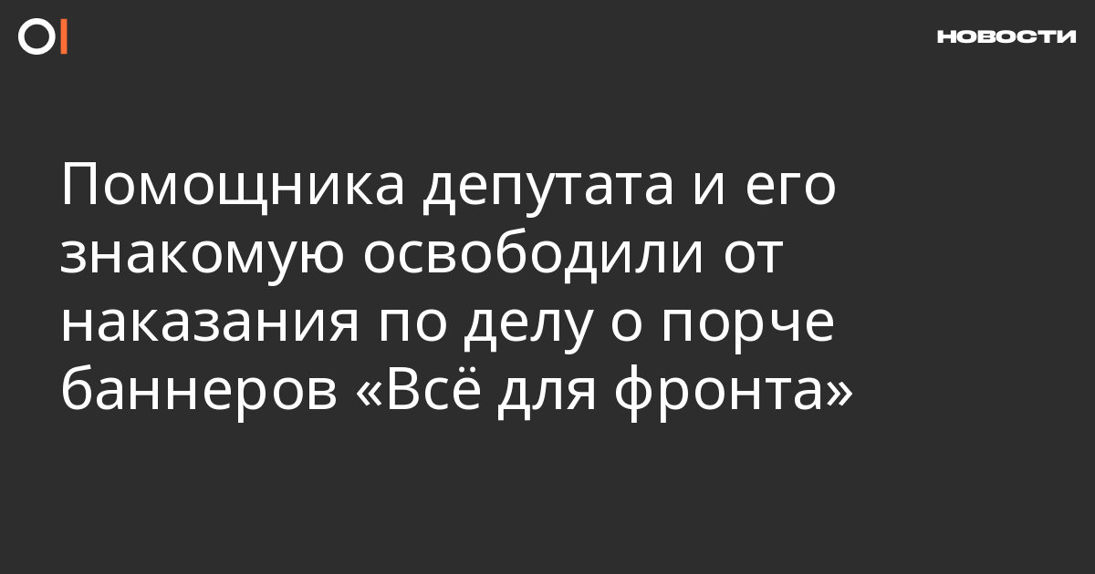 Кировский районный суд Томска в апелляции освободил от наказания по делу о порче баннеров «Всё для фронта» помощника местного депутата Станислава Шмакова и его знакомую Полину Плотникову. Об этом сообщают RusNews.